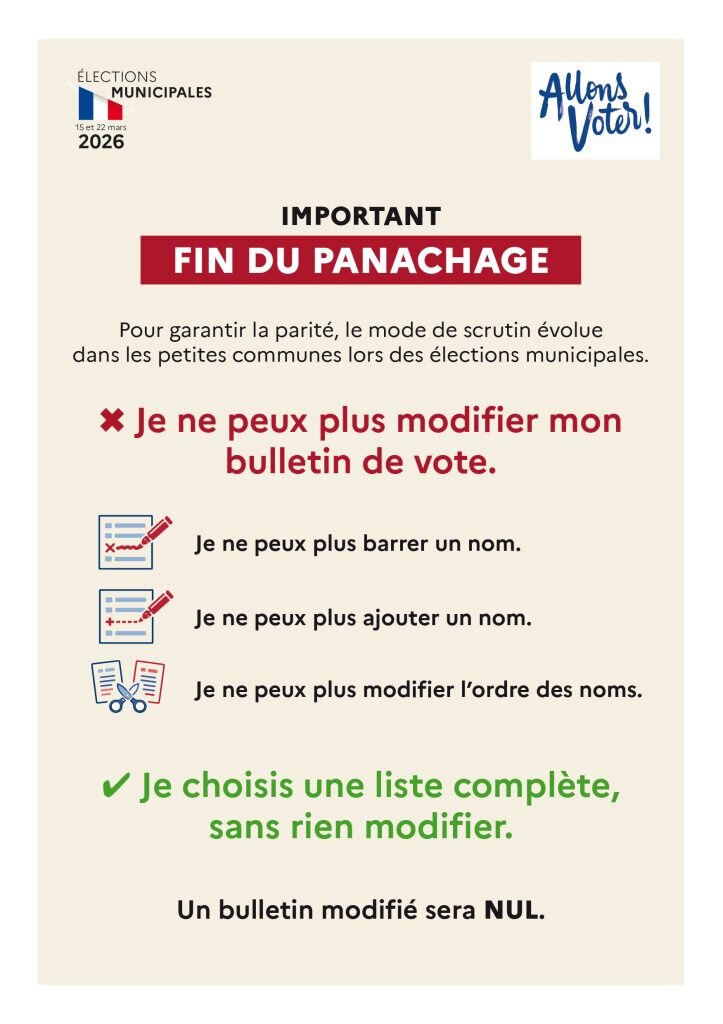 Rappel important : ne pas panacher, rayer, ajouter ou modifier les noms sur le bulletin de vote. Toute modification rend le bulletin nul et votre vote ne pourra pas être pris en compte.